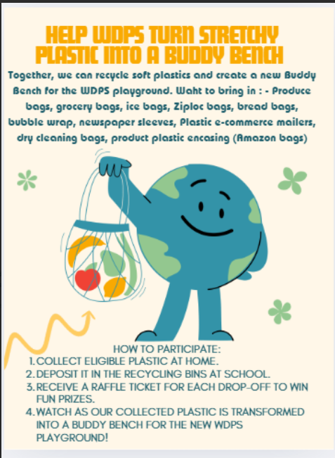 We are still collecting Stretchy Plastic. Please help us bring a buddy bench to the new playground!
